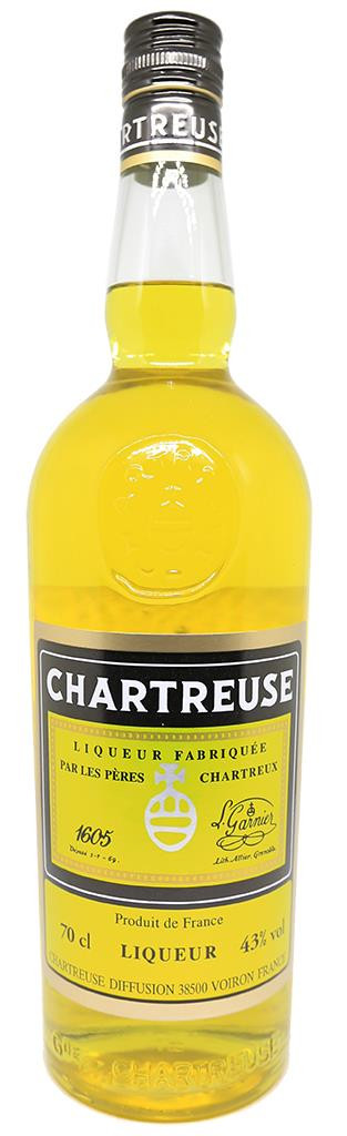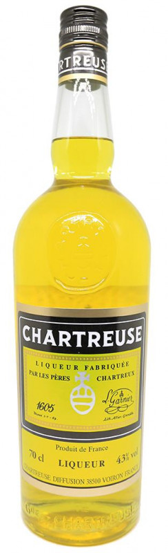 La Chartreuse jaune (55% Vol. alcool) est produite en France par les pères chartreux depuis 1764 selon une recette tradionnelle demeurée secrète et connue par seulement deux moines. Plus de 130 plantes et herbes, macérées dans un alcool de raisin puis distillées, composent sa recette. Aucun additif ni colorant artificel n'entre dans sa composition.