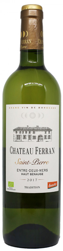 Château FERRAN ST PIERRE - Bianco secco - Biodynamic 2017 Château Ferran si trova nell'Haut Benauge entre deux mers e soddisfa tutte le condizioni per produrre un vino biodinamico. L'azienda è composta da 20 ettari di terreno coltivato di cui i vitigni a bacca bianca rappresentano il 20% della superficie con il 40% di Sauvignon blanc, il 45% di Sémillon e il 15% di Muscadelle ei vitigni a bacca rossa sono costituiti per il 40% da Cabernet Sauvignon, 45% Merlot e 15% Cabernet Franc.
