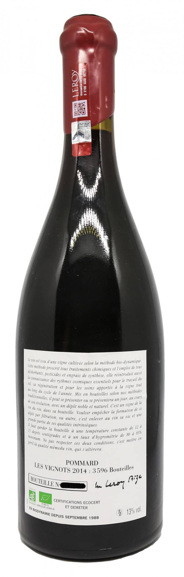 Domaine LEROY - Lalou Bize Leroy - POMMARD "Les Vignots" - Biodynamie 2014