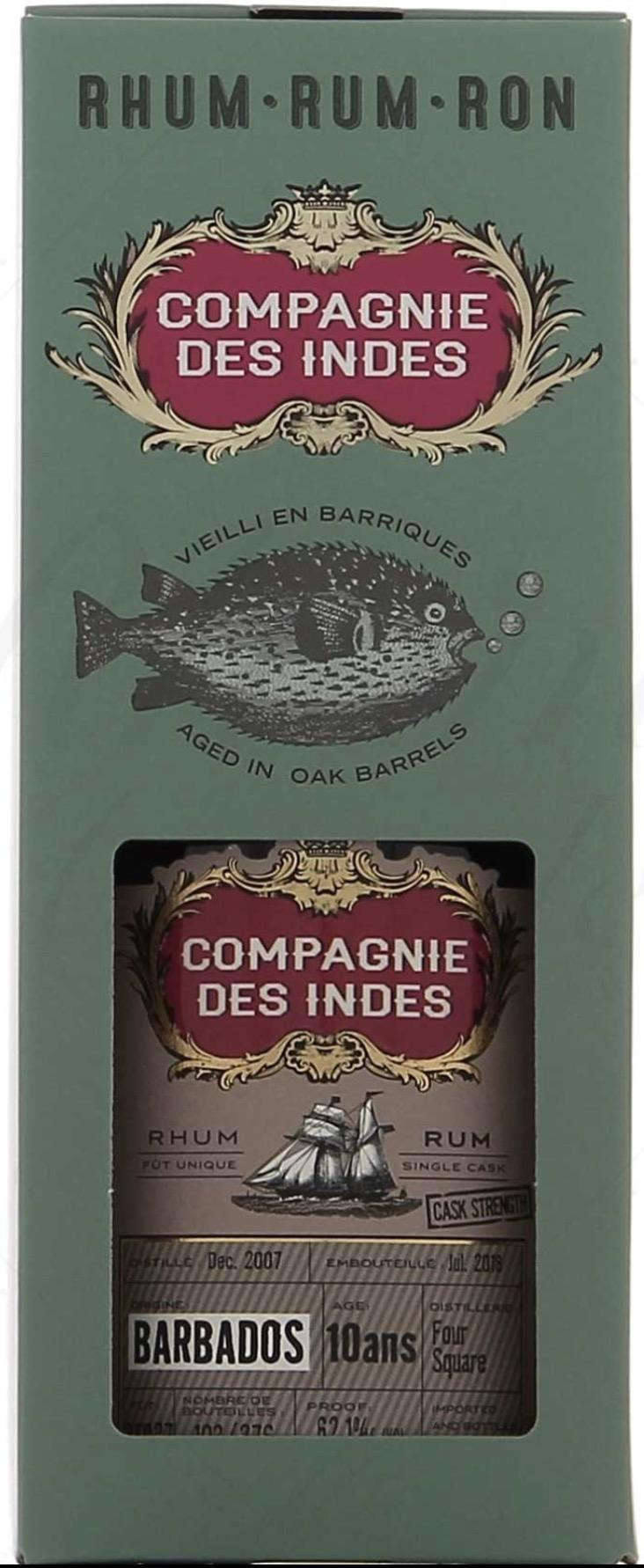 Compagnie des Indes La Barbade Foursquare 10 ans brut de fût, est donc un Single Cask et un Cask Strength. C'est à dire qu'il est issu d'un seul fût (le n°BFD27 pour les plus curieux) et qu'il n'a pas été réduit comme son petit frère (43%), il titre donc à 62,1%. Il a été distillé en Décembre 2007 pour être ensuite vieilli durant 10 ans avant qu'il ne soit rapporté en France où la Compagnie des Indes s'est chargé de son embouteillage en Juillet 2018.