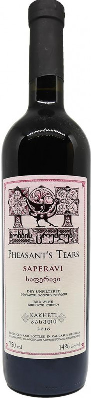 Ainsi, le Pheasant's Tears Saperavi est un vin intense et terreux, aux arômes de mûres, de groseilles noires mûres et d'amandes grillées, avec une élégante structure tannique et une très bonne acidité. Un final épicé et légèrement sec.