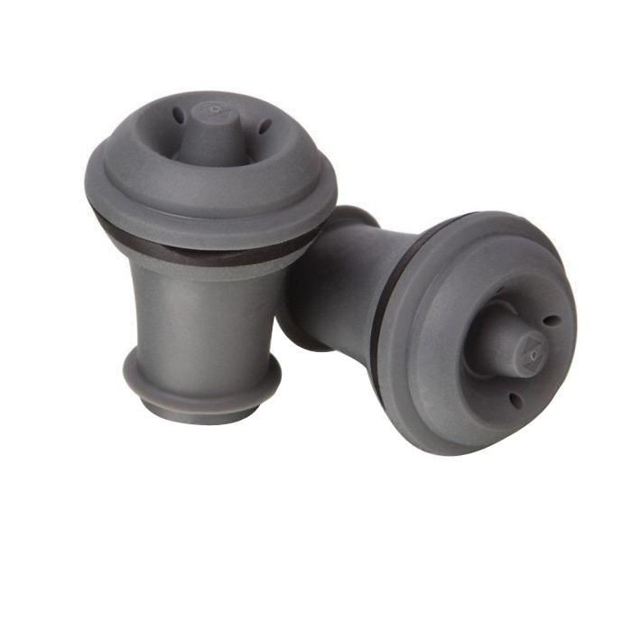 Lot de 2 bouchons permettant de conserver plus longtemps des bouteilles de vin entamées.Placez le bouchon dans le goulot et aspirez l’air à l’aide de la pompe. Un “click” sonore retentit. Il indique que vous avez suffisamment pompé et que le niveau de vide nécessaire est atteint. Le vin reste ainsi préservé des phénomènes d’oxydation et conserve toutes ses qualités pendant plusieurs jours.