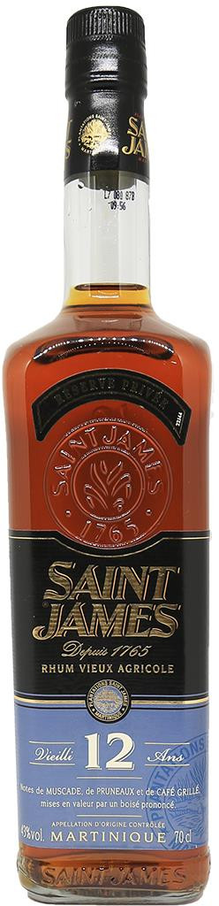 Som namnet på cuvéen antyder är denna agricole rom Saint James 12 år buteljerad vid 43% och har lagrats i 12 år på ekfat. Under dessa år har aromerna koncentrerats och utvecklat kryddiga och varma toner som stöder de exotiska och blommiga dofterna i denna rom, som belönades med medaljer vid Concours Général Agricole i Paris 2011 och igen 2012.
