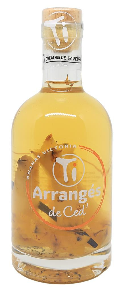 Dieser von Ananas Victoria arrangierte Rum von Ti Ced ' ist das Ergebnis der Mazeration von Victoria-Ananas aus einer Genossenschaft auf Reunion Island, die mit einem Messer geschnitten wurde, sobald sie nach einer Expresslieferung in der Werkstatt ankommen, um maximale Frische zu gewährleisten. . Diese Ananas zählen zu den schmackhaftesten der Welt, sind kleiner als ihre Kollegen, aber viel konzentrierter in Aromen. Das Ergebnis ist ein frischer und dynamischer süßer Rum.