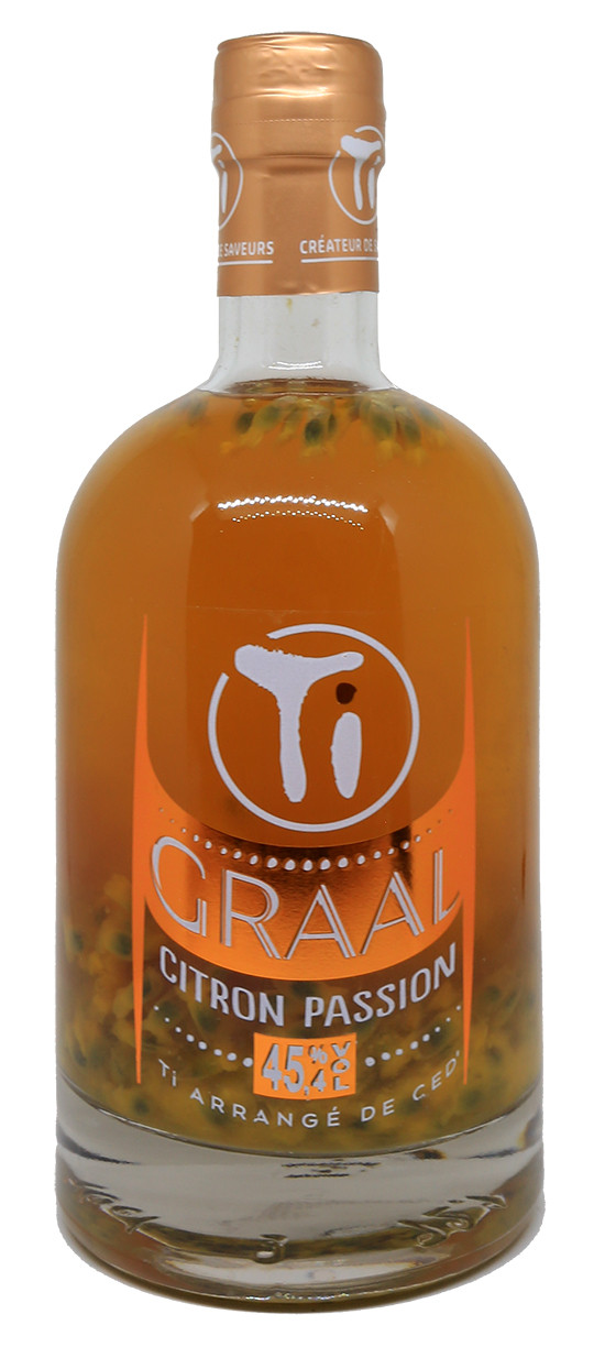 Com este Graal Citron Passion, Ti Ced' ele faz algo inédito no mundo dos rums aromatizados. Reúne primeiro 2 rums "bruto de coluna" da Martinica e Guadalupe que ele mistura e envelhece nos seus armazéns, depois adiciona limão e maracujá para um rum aromatizado vivo e saboroso.