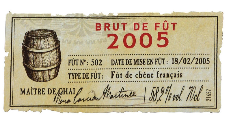 Esta cuvée Brut de fût é do ano de 2005. Seu teor natural é de 58,2% de álcool. Nenhuma redução foi feita. O número do barril é 503. Apenas 485 garrafas produzidas... uma verdadeira raridade!