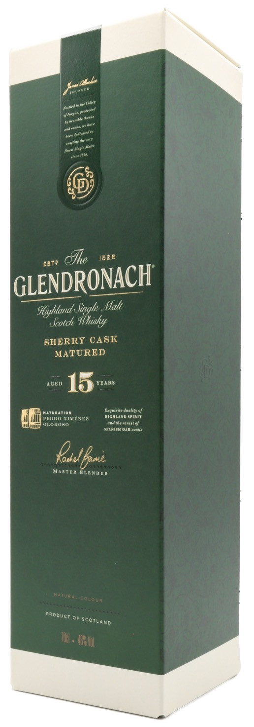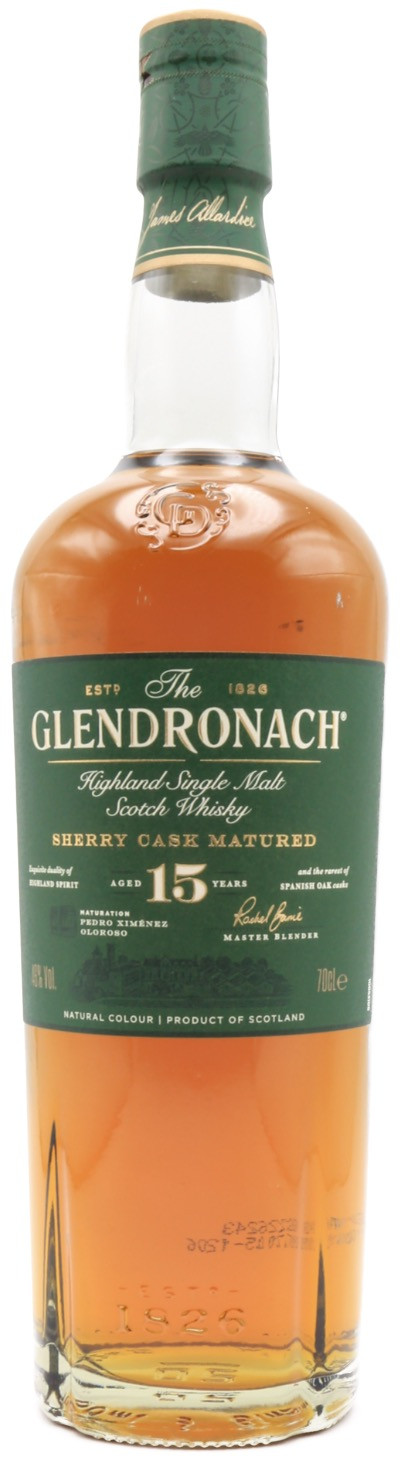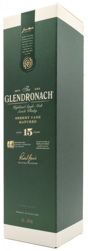 GlenDronach's 15 Year Old er en meget værdsat udgave, som vendte tilbage efter 10 års fravær på grund af mangel på modne lagre. Den er lagret på Pedro Ximénez og Oloroso sherryfade.