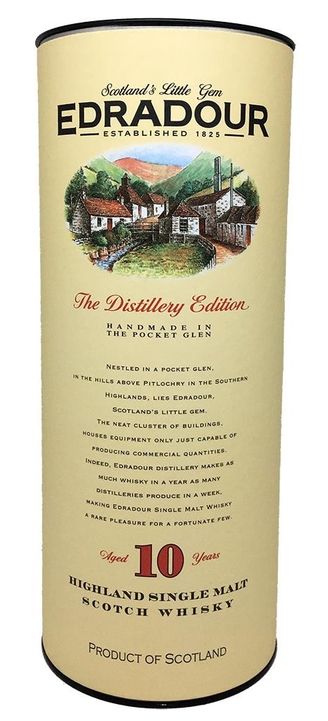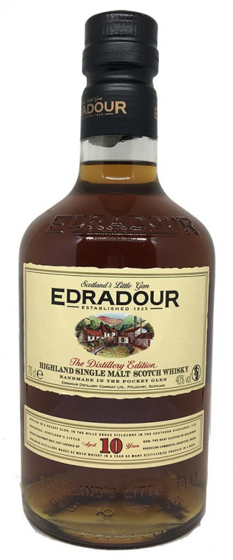 Edradour es una destilería de whisky de las Tierras Altas ubicada en el pueblo de Moulin , junto a Pitlochry. Es la destilería tradicional de whisky escocés más pequeña y el último pequeño agricultor de la época victoriana que aún sigue en producción. También es conocida por su conexión con la mafia de Nueva York. Edradour fue fundada en 1825 bajo el nombre de Glenforres Distillery por una cooperativa de agricultores locales. En 1938, Irving Haim, un agente del jefe de la mafia de Nueva York, Frank Costello, se convirtió en el principal accionista. Tras la muerte de Haim en 1976, la compañía fue vendida a un consorcio de compañías australiano-estadounidense, luego a una subsidiaria de Pernod Ricard en 1982. Desde 2002, la destilería es propiedad de Signatory Vintage Ltd. La destilería conserva muchas características tradicionales y equipos antiguos. Por ejemplo, el mosto de la tina se enfría con el último refrigerador comercial de Morton, usando solo agua fría. Ningún proceso está controlado por computadora.