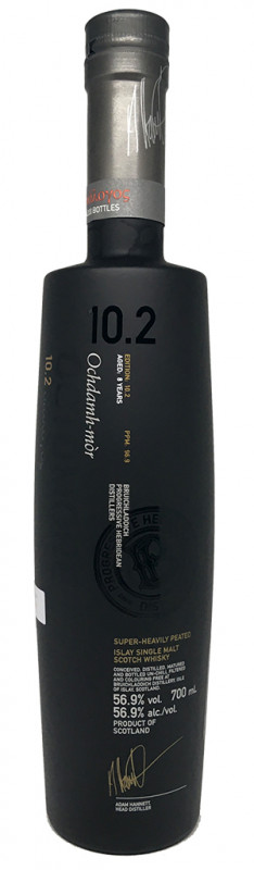 O Octomore 10.2 é um whisky turfado de 8 anos (96,9 PPM). Passou os primeiros quatro anos de sua vida em barris de bourbon frescos, antes de ser transferido para barris de Sauternes de qualidade excepcional e grande raridade.