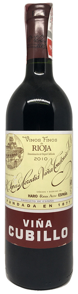 López de Heredia posee tres bodegas en la comarca de Rioja Alta, incluida Viña Cubillo . El 2010 es un coupage de Tempranillo (65%), Garnacha (25%) y 10% de Graciano y Mazuelo . Tiene una crianza de tres años en barrica de roble .
