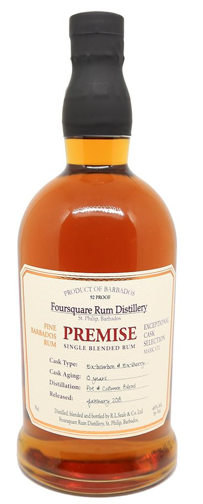 Foursquare Premise è un rum ottenuto dalla miscela di succhi distillati, da un lato in un alambicco e dall'altro in un alambicco a doppia colonna. Questa cuvée viene invecchiata per 10 anni in botti Bourbon e in parte in botti di Sherry.