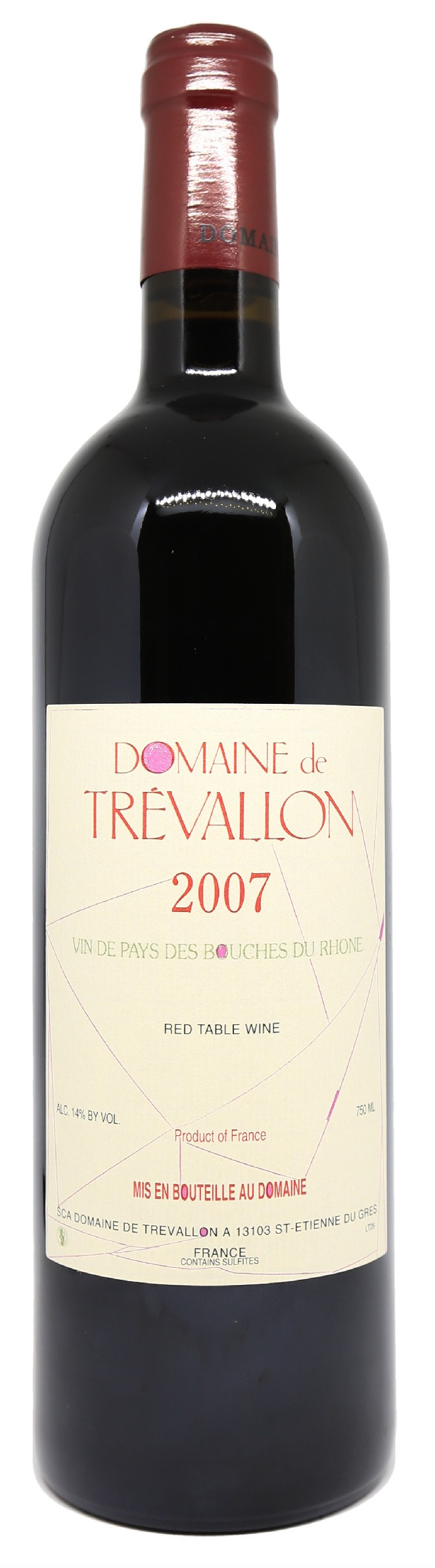 Le Trévallon 2007 rouge est un assemblage à part égale de Cabernet Sauvignon et Syrah, plantés sur un terroir argilo-calcaire, très caillouteux. En 2007, rien ne laissait présager un grand millésime (pas de conditions climatiques exceptionnelles, pas de printemps précoce, pas d’été chaud et sec) pourtant dès le début des vendanges, le raisin avait beaucoup de goût et une richesse extraordinaire. L’élevage dure 24 mois en foudres et en barriques et les lies qui se trouvent au fond des fûts nourrissent le vin pendant toute la durée de l’élevage. Léger collage au blanc d’œuf frais mais aucune filtration pour la mise en bouteille. Ce vin a un grand potentiel de garde.