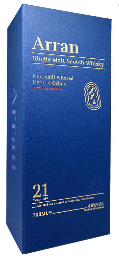 Arran 21 år er lavet af maltbyg og lagret i sherryfade i 21 år.