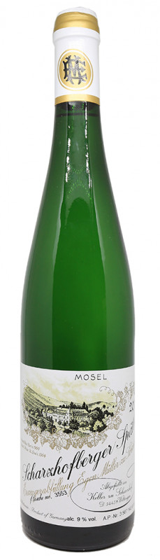 Weingut Egon Müller se encuentra en la subregión del valle del Saar del Mosela en Alemania . La finca se estableció en 1797, cuando Jean-Jacques Koch compró la granja Scharzhof a la República Francesa. Su hija se casó con Felix Müller y la propiedad ha permanecido en la misma familia desde entonces. El actual propietario es Egon Müller IV , que estudió en la mejor universidad de vinos de Geisenheim. Una gran parte del viñedo de Scharzhofberg (8,5 hectáreas), ubicado en las laderas de esquisto gris orientadas al sur, detrás de la casa y la bodega Scharzhof, forma el corazón de la finca Egon Müller. Trabaja exclusivamente con la uva Riesling y los vinos se elaboran en diferentes niveles de madurez : Kabinett, Spätlese, Auslese y Auslese Goldkapsel en los mejores años. Si las condiciones lo permiten, también se producen dulces Beerenauslese, Trockenbeerenauslese y Eiswein.