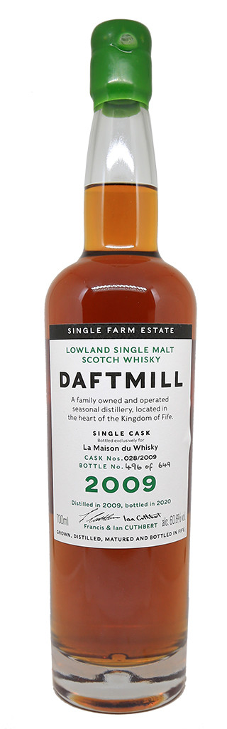 Daftmill 2009 Single Cask 028/2009 se elabora con la variedad de cebada Optic que se cultivó en los campos de la finca y se cosechó la última semana de agosto de 2006. La cebada se almacena en la finca antes de ser utilizada. para ser malteada en Alloa en el verano de 2007. La barrica de Jerez Oloroso para el primer llenado fue elegida por el equipo de La Maison du Whisky . Se destiló durante la temporada de verano, se embotelló el 8 de julio de 2009 y se embotelló exclusivamente para La Maison du Whisky. Se produjeron 649 botellas .