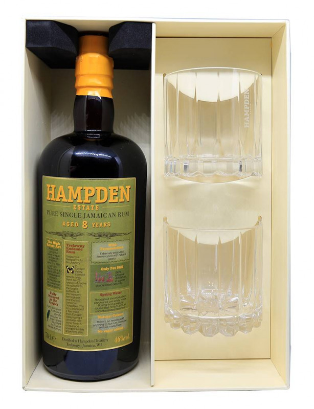 Hampden - 8 Jahre - Schachtel mit zwei Gläsern - 46%