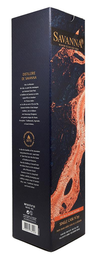 Ce Savanna de 15 ans d’âge fait partie de la gamme Wild Island Edition, qui rend hommage à la nature sauvage de l’Île de la Réunion. Cette version Volcan, vieillie en fût d’ex-Cognac, provient du fût #251 qui a produit 420 bouteilles. Il a été mis en bouteille « Barrel Proof », c'est-à-dire sans réduction.