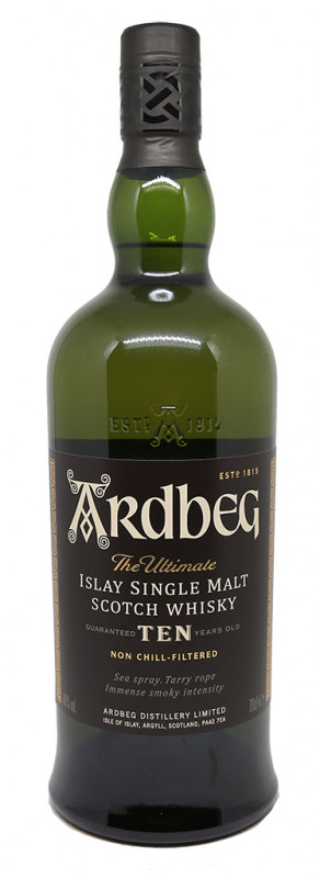 Ardbeg 10 años se considera el Single Malt más turbio, ahumado y complejo de todo el mundo.