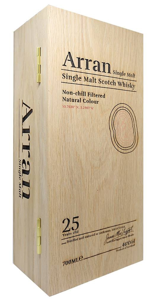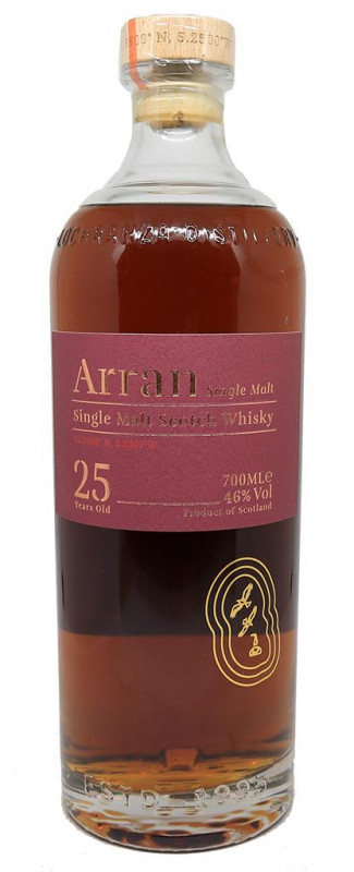 Der 25-Jährige ist Arrans ältester Whisky und feiert den 25. Jahrestag der Brennerei. Diese limitierte Edition produzierte weltweit 3.000 Flaschen . Es wird aus dem Originalbestand von 1995 hergestellt, der in Ex-Bourbon- Fässern (65%) und Ex- Sherry-Fässern (35%) gereift ist, die dann in Sherry-Fässer mit Hogshead-Auffüllung und Aufladung für 1 Jahr überholt wurden 12 Monate vor der Abfüllung.