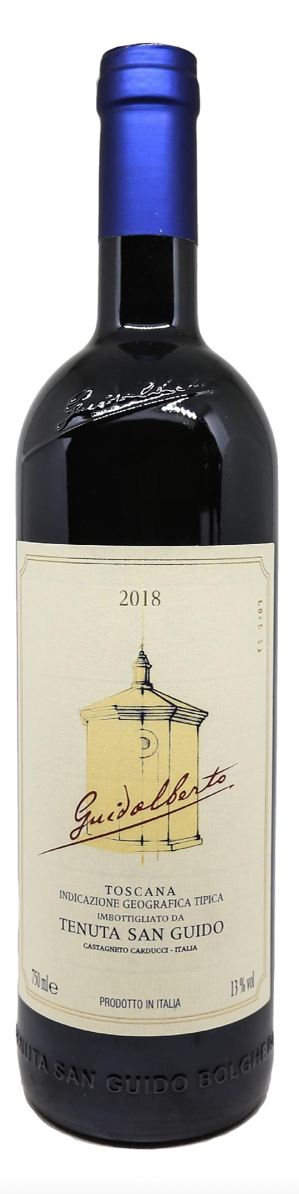 Guidalberto est le deuxième vin de Tenuta San Guido. Le 2018 est un assemblage de Cabernet Sauvignon (60%) et Merlot (40%). Les vendanges manuelles ont débuté avec le Merlot dans les premiers jours de septembre puis le Cabernet Sauvignon de mi-septembre à la première semaine d'octobre. Les grappes et les baies de raisins sont triés manuellement avant un pressurage doux et égrappage pour éviter la casse des baies et une libération excessive de tanins. La fermentation alcoolique a eu lieu dans des cuves en acier inoxydable sans ajout de levures externes. La macération a duré 10 à 13 jours pour le Merlot, et 13 à 16 jours pour le Cabernet Sauvignon avec des remontages fréquents pour obtenir des moûts plus équilibrés et favoriser l'extraction aromatique. Suite à la fermentation malolactique également réalisée en cuve inox, les moûts sont transférés en barriques françaises et dans une petite mesure en barriques américaines pendant une durée de 15 mois.