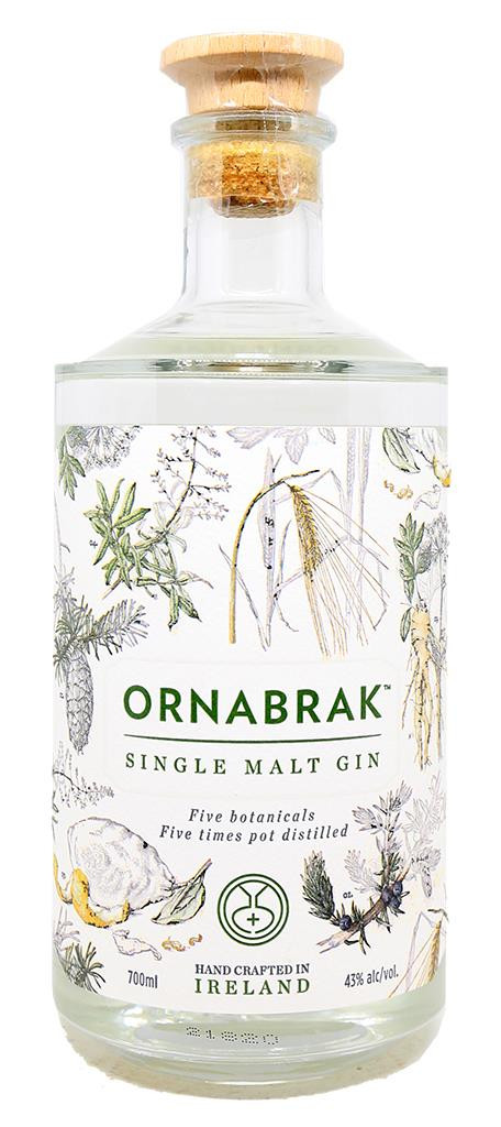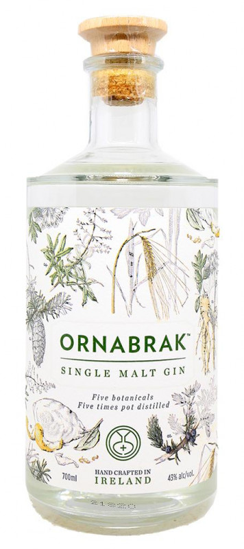 Ornabrak é um Gin Single Malt artesanal produzido na Irlanda. Sua história começa com os solos férteis e o clima oceânico ameno do sul da Irlanda, reconhecido como um dos melhores lugares do mundo para cultivar cevada para cerveja. O termo "Single Malt" refere-se a um destilado produzido em uma única destilaria usando um processo de destilação em alambique e feito a partir de uma purê de cevada maltada. A cevada para cerveja é livre de OGM e proveniente de produtores contratados, principalmente no sudeste da Irlanda. Em seguida, é maltada em Cork, um processo que envolve imersão, germinação e secagem para liberar enzimas enquanto preserva os benefícios naturais e os sabores do grão. Uma vez maltada, a cevada é moída, esmagada, fermentada e destilada quatro vezes em alambiques de cobre em West Cork.