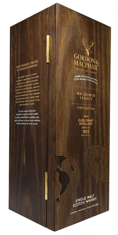 Mr. George Legacy Series ist ein 67 Jahre alter Single Malt. Es wurde 1953 destilliert, in Sherryfässern aus der ersten Füllung gereift und 2021 in Flaschen abgefüllt. Es kommt aus einem einzigen #4209 Fass und produziert nur 355 Flaschen .