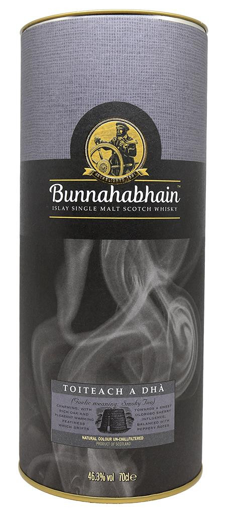 Toiteach A Dhà significa "Dois Fogs" em gaélico escocês. A Senior Blender, Dra. Kirstie McCallum, selecionou uma combinação de velhos barris de Bourbon e Xerez que foram então totalmente maturados nos armazéns costeiros da baía de Bunnahabhain. Esta expressão é uma versão mais turfada e defumada do clássico Bunnahabhain.