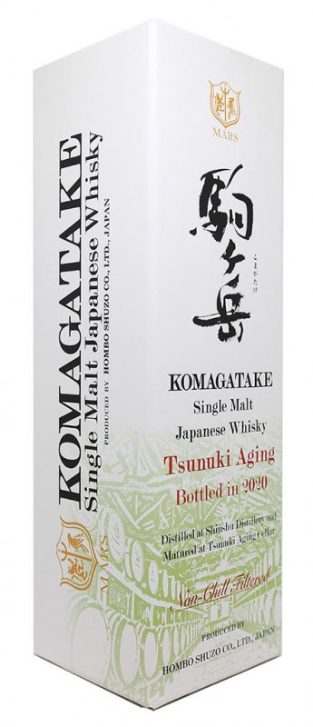 La nuova marca di questo whisky è stata prodotta presso la Mars Shinshu Distillery e poi trasportata alla Mars Tsunuki Distillery a Kagoshima per la conservazione. Realizzato con l'attrezzatura di distillazione di Shinshu e invecchiato in una regione più calda, il Komagatake Tsunuki Aging 2020 ha sviluppato un'espressione distinta.