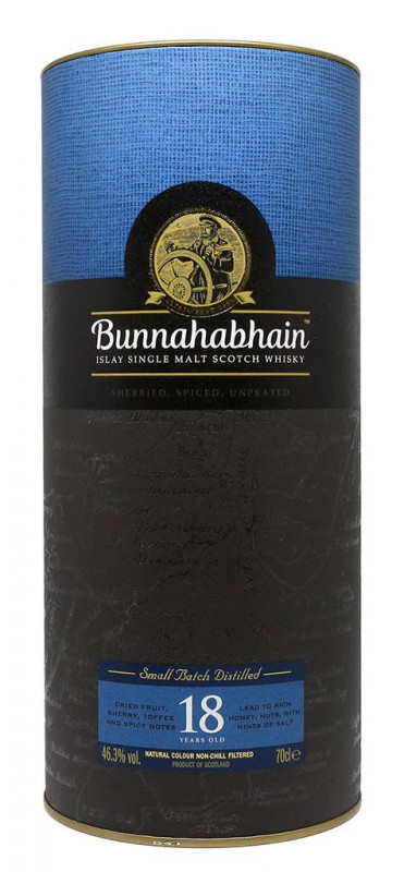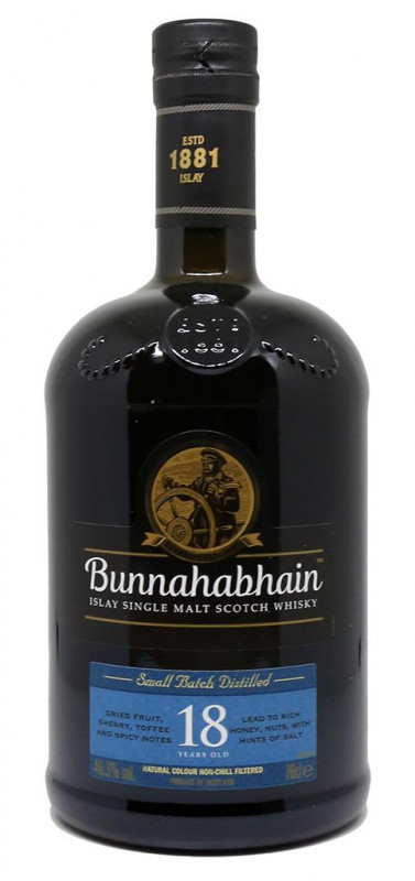 Bunnahabhain Destilleriet ligger på øen Islay (udtales "Ayla") i Skotland. Dets historie går tilbage til 1881, hvor William Robertson grundlagde destilleriet sammen med William og James Greenlees. I 1883 var whiskyproduktionen på destilleriet i fuld gang, og i 1963 førte den stigende popularitet af skotsk whisky til en fordobling af destilleriets pot stills. I begyndelsen af 1980'erne faldt whisky-markedet, og destilleriet blev lukket i 1982, men produktionen genoptog hurtigt to år senere. I de følgende år gik Bunnahabhain gennem flere ejerskaber, inden det blev opkøbt af Distell-gruppen i 2013. Fremstillingsprocessen for Bunnahabhain whisky starter med let tørvet maltbyg, som kombineres med kildevand fra "Margadale", opvarmet i kedlen for at producere urten. Gæringen foregår derefter i Oregon fyrretræstanke. Ingen af de single malt skotske whiskyer produceret af Bunnahabhain filtreres kold. I modsætning til de fleste Islay whiskyer er Bunnahabhains whiskyer ikke stærkt tørvede eller røgede.