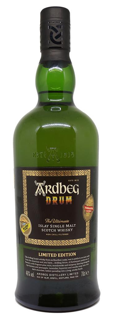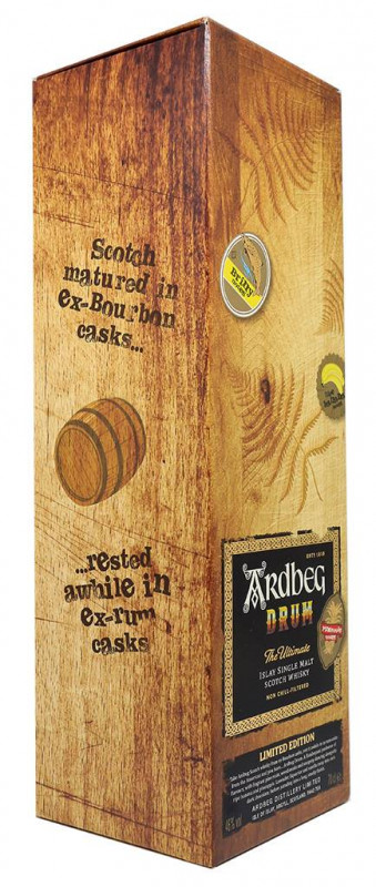 Ardbeg Drum é uma edição limitada inicialmente envelhecida em ex-barris de Bourbon e depois refinada em ex-barris de Rum.