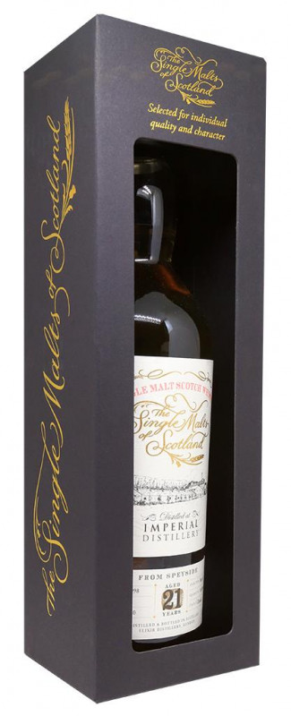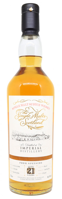 Die Imperial Distillery war ein Produzent von Single Malt Whisky mit Sitz in Carron, Speyside , der zwischen 1897 und 1998 sporadisch in Betrieb war. Imperial wurde im Laufe seiner hundertjährigen Geschichte mehrmals geschlossen und wiedereröffnet. Sie wurde 2013 abgerissen und 2015 zog eine neue Destillerie, Dalmunach, an den Standort. Diese Version wurde am 2. Oktober 1998 destilliert, sie wurde 21 Jahre #103328) und am 26. März in die Flasche gefüllt , 2020. Nur 104 Flaschen wurden produziert.
