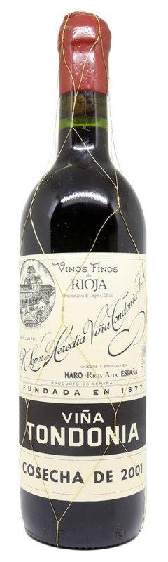 Viña Tondonia Gran Reserva 2001 är en blandning av Tempranillo (70%), Garnacha (20%), Mazuelo med lite Graciano, och har lagrats i 10 år på ekfat. Årgången 2001 bedömdes som utmärkt av DOC Riojas styrelse. Kvaliteten är extraordinär på grund av en mycket torr sommar som förhindrade svampsjukdomar. Druvorna anlände till källaren i perfekt hälsotillstånd. Druvorna visade god fruktmognad och till och med något högre än genomsnittet i Rioja Alta-regionen, som på grund av sin höjd och nordliga latitud har en begränsad odling främst på grund av solens påverkan. Vinerna har en stor balans och kan lagras på flaska och förbättras ytterligare.