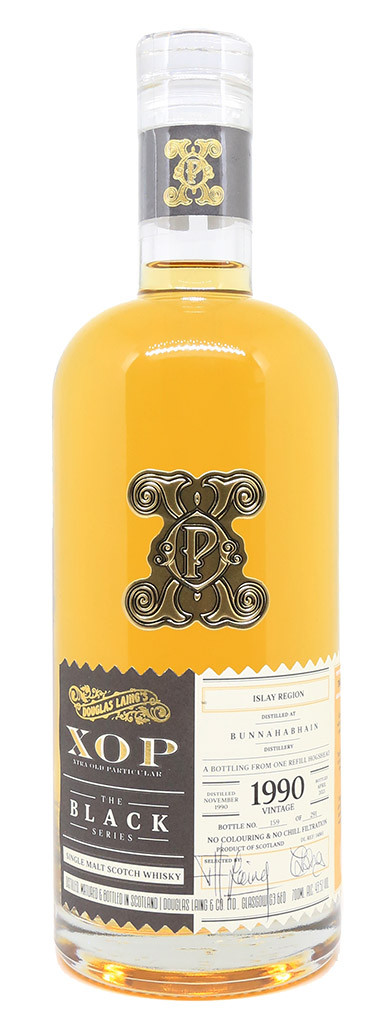 XOP The Black Series je rozšířením značky Xtra Old Particular Single Cask Scotch Whisky. Každá láhev je ručně plněná a má raženou kovovou etiketu, skleněný uzávěr a ručně psané podpisy Freda a Cary Laingových. Černá krabička z moleskinu obsahuje vedle láhve whisky certifikát pravosti.