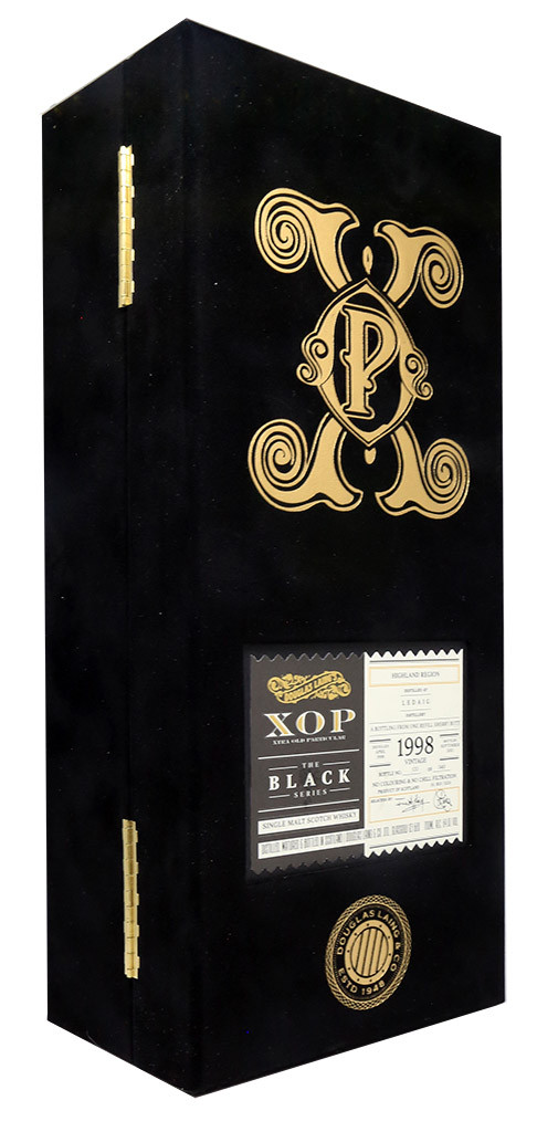 XOP The Black Series é uma extensão da marca Xtra Old Particular Single Cask Scotch Whisky. Cada garrafa é preenchida à mão e possui um rótulo metálico em relevo, uma rolha de vidro e as assinaturas manuscritas de Fred e Cara Laing. Uma caixa de moleskine preta contém um certificado de autenticidade ao lado da garrafa de uísque.