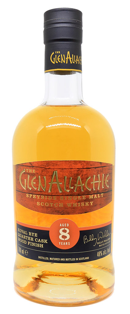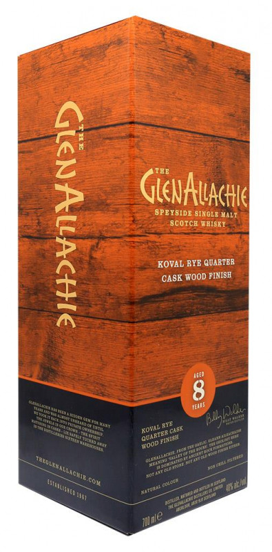 GlenAllachie Koval Rye Quarter Cask 8 år är en del av Wood Finish-serien. Den har först lagrats i de finaste amerikanska faten med en extra mognadsperiod i mindre (quarter cask) ekologiska rågfat från Koval-destilleriet i Chicago. Förhållandet mellan trä och vätska är högre, vilket betyder att de karakteristiska kryddorna från rågen har en större påverkan på whiskyn.
