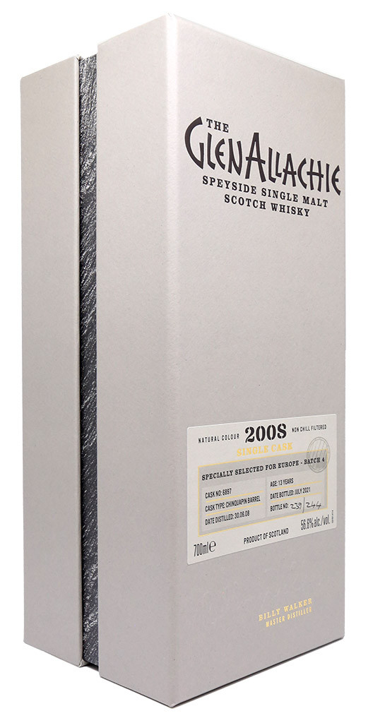 GlenAllachie 13 ans Chinquapin Barrel provient d’un fût unique (#6897). Le whisky a été distillé le 30 juin 2008 et embouteillé 13 ans après en juillet 2021. 244 bouteilles ont été produites.
