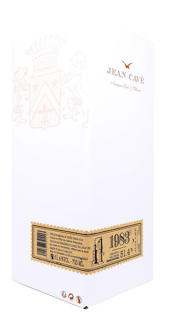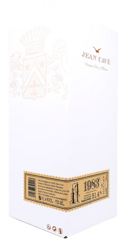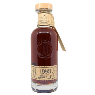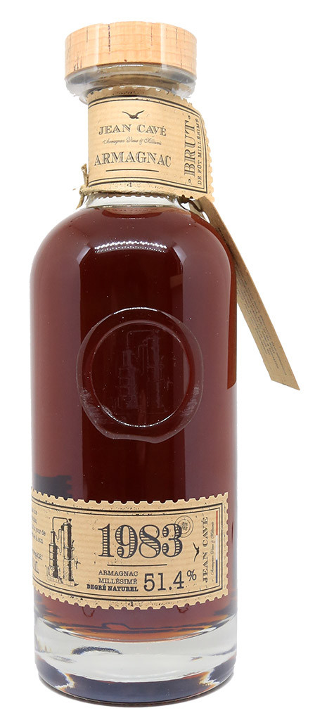 Este Jean Cavé Brut de Fût Armagnac de 1983 procedente de los mejores vinos de la región gascona ha envejecido en barricas viejas de roble de grano grueso de tostado medio.