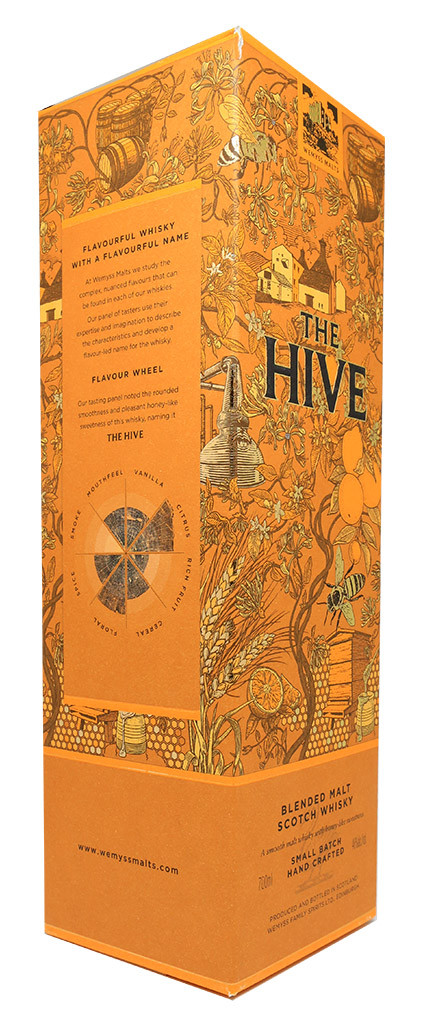 The Hive is a blend of base malts (62% vatting of select light, sweet and soft Speyside Single Malts), support malt (8% support of richly flavoured Speyside Single Malt) and signature malt (30% fruity Speyside Single Malt).