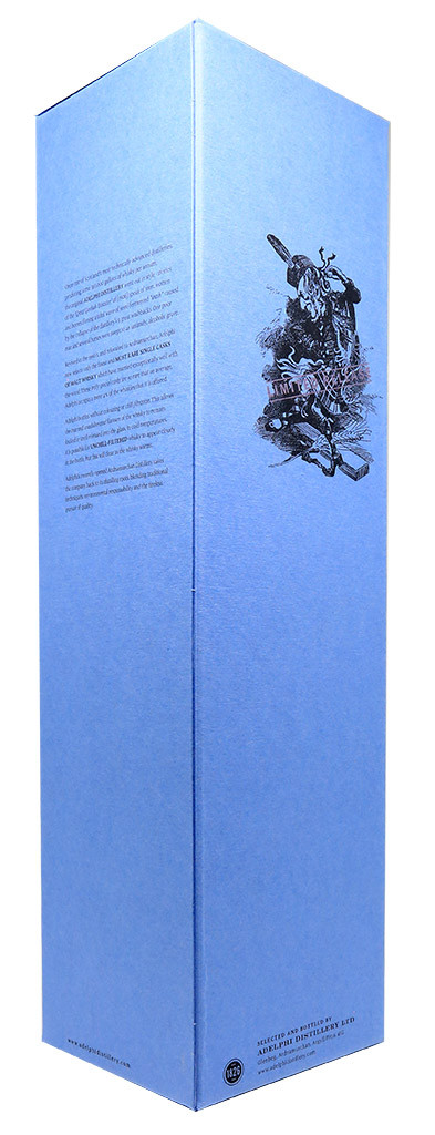 Adelphi uses the drawing of the ‘Dancey Man’ on its bottles. It is a mid-19th century cartoon, depicting Sir William Gladstone performing an energetic 'Pas de Bas' over an ear of barley to celebrate the passing of a new law that revenue could only be raised on the amount of whisky left in each cask after maturation, and not the level that it was originally filled to.