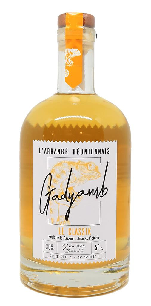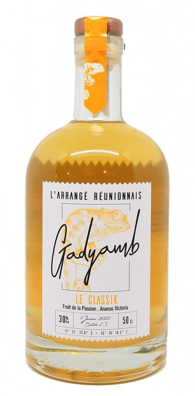 Gadyamb ist eine Marke von arrangierten Rums, die von Etienne und Julien kreiert wurden. Sie trafen sich 1999 in Saint Joseph an der Südspitze der Insel La Réunion und verließen die Insel, um ihre Hochschulausbildung in Frankreich zu machen. 2018 unterbrachen sie ihre berufliche Laufbahn als Medienberater und Koch, um ein Projekt zu starten, das sie sich während der langen Winter in der Metropole vorgestellt hatten: Les Arrangés Gadyamb . Das Know-how von Gadyamb basiert auf drei Grundpfeilern: vertrauenswürdige Partner (fürsorgliche Produzenten, die darauf bedacht sind, das Land und die Traditionen zu respektieren), die Auswahl der Zutaten (Früchte, die bei perfekter Reife gepflückt, geschnitten und von Hand verarbeitet werden, um alle ihre Aromen zu bewahren) und ein Originalmethode (Mazeration in Fässern vor der Filtration, für ein stabiles Endprodukt ohne Verunreinigungen).