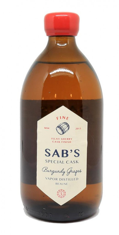 SAB's is a range of spirits produced by Alambic Bourguignon , in Beaune in Burgundy . It was created by Mathieu Sabbagh , whose idea was to revive original eaux-de-vie, planted on the Burgundian terroir as the winemaker does with his plots and his grapes. He has a traveling still , which moves around and distills on the very spot of the harvest. Thus, he can distill the best of Burgundy: Pinot Noir and Chardonnay in Beaune, Meursault, Gevrey-Chambertin or even Pommard. The three-vessel copper still captures the nuances and aromas of Burgundy grapes in the steam . The distiller tastes each batch as it comes out, and directly chooses the exact “cut” point of the distillation. The eaux-de-vie first rest in small Burgundy oak barrels of 228 liters and then mature for many years at room temperature (hot in summer and cold in winter). Bottling is done by hand in brown apothecary bottles sealed with a wax cap that will be colored differently depending on the product.