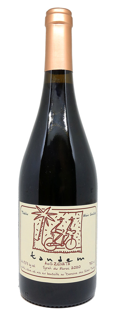 El Domaine des Ouled Thaleb se encuentra entre Casablanca y Rabat en la región de Benslimane, Marruecos . La finca existe desde 1926 y ahora está dirigida por Jacques Poulain , un enólogo originario de Burdeos. Tandem nació del encuentro entre Jacques Poulain y Alain Graillot , enólogo de Crozes Hermitage. Desde 2010, Alain Graillot deja la gestión de su finca a sus hijos, Maxime y Antoine, para dedicarse a la consultoría en viticultura y enología . Esto lo llevó a varios países del mundo donde hay importantes productores de vino. Primero se centró en lo que mejor conoce: Piamonte y Galicia. Luego optó por presentar productores de Sudáfrica, Austria, Marruecos, Australia, Estados Unidos y finalmente Portugal.