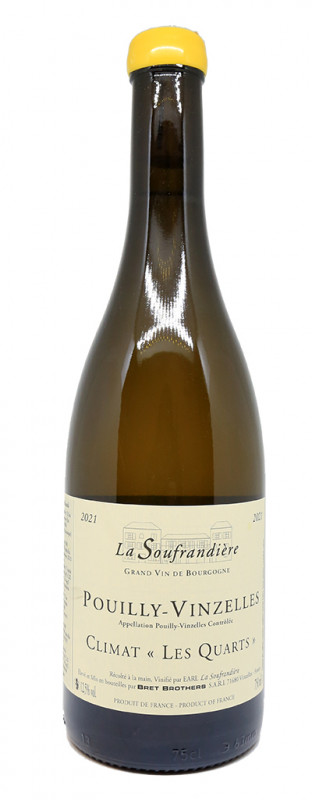 Climat "Les Quarts" wird aus Chardonnay -Reben hergestellt, deren Alter zwischen 45 und 80 Jahren variiert. Sie werden auf einem 2 Hektar großen Grundstück in der Appellation Pouilly-Vinzelles angebaut. Die Trauben werden von Hand geerntet, dann von La Soufrandière vinifiziert und von Bret Brothers gereift und in Flaschen abgefüllt. Die malolaktische Gärung wird nicht blockiert. Die Reifung erfolgt in Fässern und Bottichen für 17 Monate .