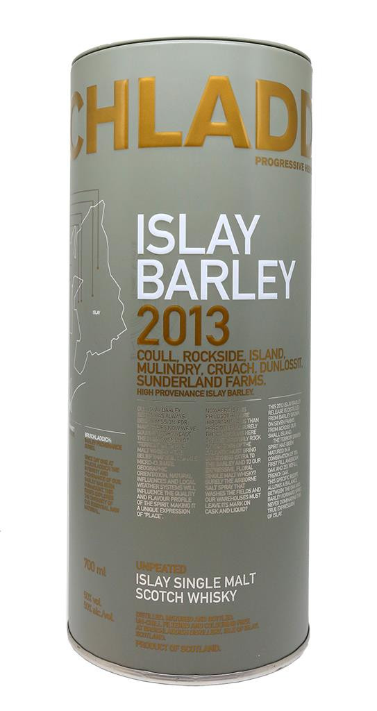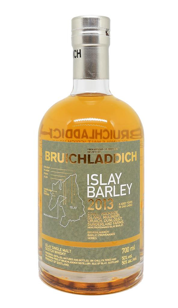 Bruichladdich Islay Barley 2013 is gemaakt van lokaal geteelde Concerto-gerst. De gerstoogst voor deze jaargang 2013 komt van 7 landbouwpartners op Islay: Hunter Jackson in Cruach, Andrew en Donald Jones in Coull, Mark French in Rockside, Ian McKerrell in Island, Alistair Torrance in Mulindry, Raymond Fletcher in Dunlossit en Raymond Stewart in Sunderland. De whisky is 8 jaar gerijpt in voormalige Amerikaanse first-fill whiskyvaten (75%) en voormalige wijnvaten (25%) die wijnen van Ribera Del Duero, Pauillac en Syrah bevatten.