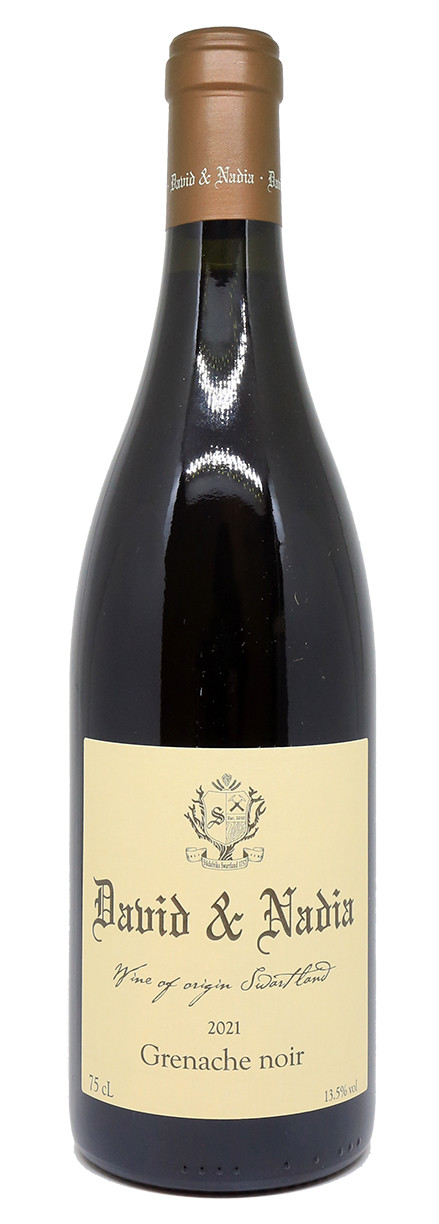 De Grenache 2021 uit de David & Nadia-serie komt van droge grondstokken uit verschillende wijngaarden in Swartland: een wijngaard in Paardeberg geplant begin jaren 2000, een andere wijngaard in Paardeberg recentelijk geplant aan de noordoostkant van de Langkloof-vallei, een wijngaard geplant in 2016 op leisteen van Kasteelberg en een wijngaard van een boerderij ten noorden van Malmesbury waarmee het paar sinds 2012 samenwerkt. De schilmaceratie duurt 4 weken, waarbij 60% hele trossen behouden blijven. Er wordt één keer per dag getrappeld om een minimale en zachte extractie mogelijk te maken. Na het persen wordt de wijn 1 jaar gerijpt in oude neutrale Franse eikenhouten vaten van 500 liter en in een betonnen tank van 2700 liter.