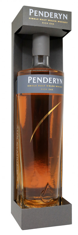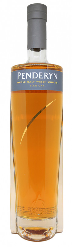 Penderyn Gold Rich Oak se envejece en barricas de Bourbon y se termina en barricas de vino STR ("Afeitado, Tostado y Recharred")