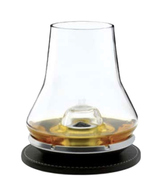 El set de degustación combina diseño y técnica para el placer de todos los conocedores de whisky y brandy. Coloca debajo del vaso la base que has metido en el congelador unas horas antes. Luego vierte el licor y espera de 2 a 3 minutos. Se enfría de 5 a 8 grados gracias a la base sin ser nunca brusco.