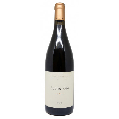 Cucuniano är en blandning av Syrah (44%), Grenache (38%) och Carignan (18%). Vinstockarna odlas på 450 meters höjd på ler-kalkhaltiga bergssluttningar. En del av skörden bevaras som hela klasar (40%). Vinifieringen sker med inhemska jäststammar och en mild extraktion. Vinet lagras 9 månader i betongtank och 500 liters barriques.