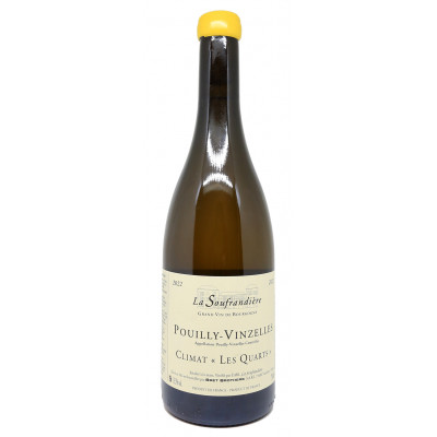 Climat « Les Quarts » est élaboré à partir de vignes de Chardonnay, dont l’âge varie de 45 à 80 ans. Elles sont cultivées sur une parcelle de 2 hectares sur l’appelation de Pouilly-Vinzelles. Les raisins sont récoltés à la main puis vinifiés et élevés en fûts et cuves pendant 17 mois
