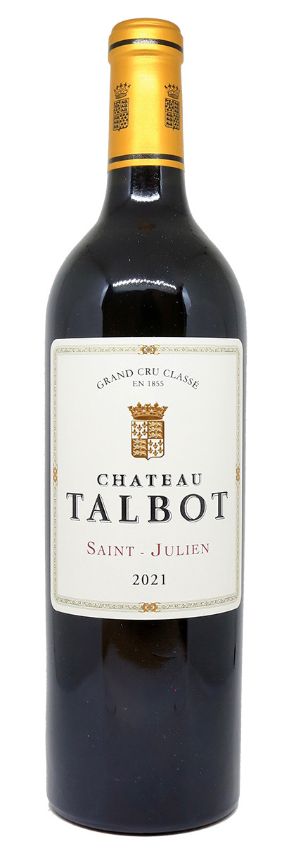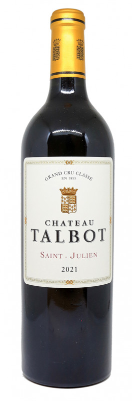 Château Talbot 2021 är en blandning av Cabernet Sauvignon (71%), Merlot (24%) och Petit Verdot (5%). Druvorna skördas för hand och sorteras både manuellt och med optisk maskin. Jäsningen sker i ekfat, följt av en lagring på 15 månader i ekfat, varav 60% är nya.